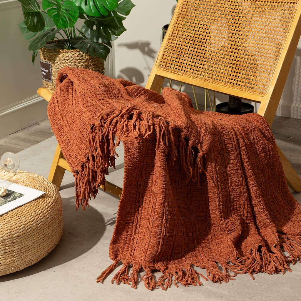 I ordered the orange and I just love it. It's very soft and comfortable against your skin. It makes a statement by bringing in some much needed color and texture into my living room. The fringe is beautiful too, and reminds me leather suede.